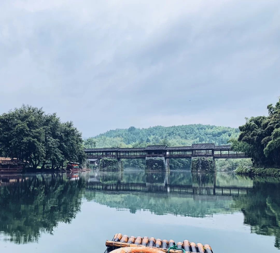 12:30吃完午饭后带着小孩散下步,走走【彩虹桥】,坐着竹排游江,跨过古老廊桥看小镇全景。(活动时间约1小时)
