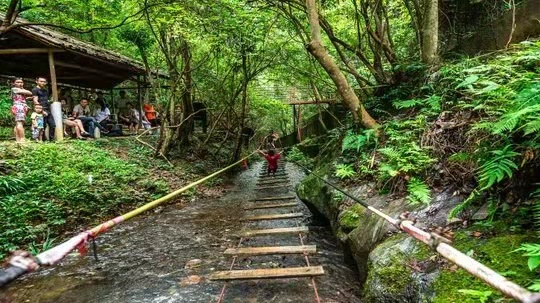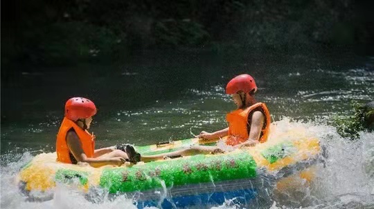 漂流全程4.8公里,整段峡谷落差近100米,全程大小落差不断。人在水中漂,如在画中游,既可享受澎湃刺激而又安全的漂流,又能在自然生态的环境中享受优质水质的无穷魅力;漂过一山又一山,赏尽一景又一景,令人流连忘返。漂流终点上岸后更换衣服。