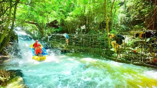 抵达后参加[皇龙大峡谷]景区古藤老树、奇山怪石、鸟语花香随处可见,清澈无污的泉水随口品尝,置身其中犹如进入绿色乐园,感受.“欢乐向前冲”的欢笑与刺激。