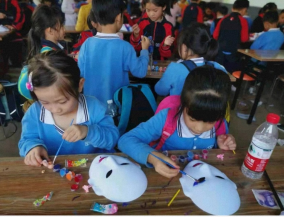 “脸谱源于原始的图腾,最初用于祭祀,后来演变为表演艺术,红脸为忠勇,白脸为奸诈,黑脸表示勇猛,蓝脸表示重情义”大家根据脸谱模型样式自行填色,并充分发挥自己的想象力和创造力,用心感受京剧脸谱的非遗魅力所在,增强学生热爱祖国、热爱家乡的情感,传承历史的文化经典和文化精神。