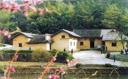 刘少奇故居:正门悬1980年邓小平同志题写的"刘少庭奇同志故居"匾额。堂屋内陈列一本清朝同治十年的历书和1961年5月刘少奇、王光美在故居的合影