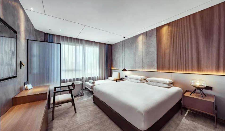 杭州万合酒店位于复兴路与南复路交叉口,背依钱塘江,比邻杭州陶瓷品市场、南宋官窑博物馆、八卦田、基金小镇,距西湖约10分钟车程,距宋城、灵隐寺等杭州核心景点约20分钟车程,距离地铁四号线水澄桥站约400米,与复兴大桥入口咫尺之遥,交通便利。酒店由国美建筑设计研究院知名设计师设计,荣获2020 DESIGN FOCUS国际空间设计大奖,淬炼钱塘江、杭城元素,简而未减,华而不宣。打造全场景无感体验,拥有智能客控系统,刷脸入住,语音/小程序完成设施控制及呼叫服务,让您感受简练建筑、科技优雅、谦恭礼遇之境。酒店拥有123间智能客房,房内设施齐全,配备顾家豪华床品、TOTO智能马桶、保险箱、迷你吧以及冰箱。无柱设计宴会厅是举办大型展会、公司会务、社交活动、梦幻婚礼的理想场所。先进的宴会设施包括专业的视听设备、3套超大高清液晶屏幕、高速互联网服务。万合酒店独具特色全日制餐厅、本味和万合轩中餐厅带您领略非凡美食之旅,亦可在大堂酒廊享受经典下午茶或午夜醇饮放松身心,观看钱江夜景;全方位开放式大露台-问茶,风光明媚的露台和静心的瑜伽诠释了什么叫做生活的艺术;您也可以在钱塘江边来一场说走就走的骑行和酣畅淋漓的跑步。旨在缔造匠心精神并提供细致温润的贴心服务,为您开启行旅雅致生活。