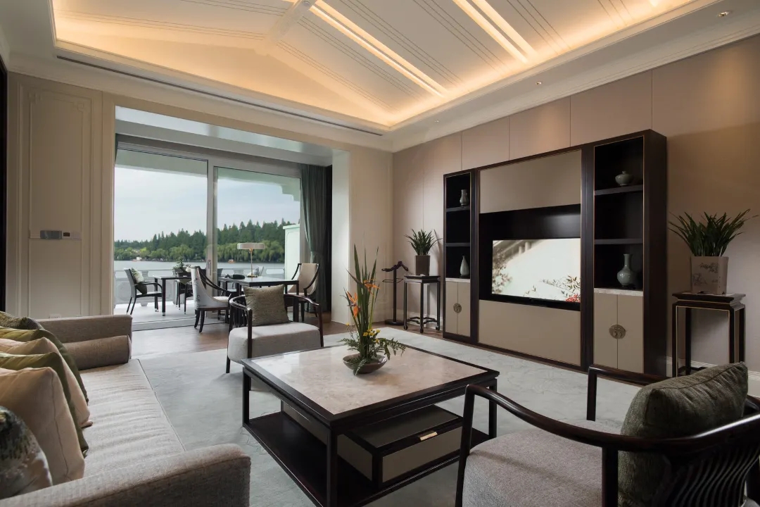 我们酒店位于杭州“西湖十景”之一的“雷峰夕照”山麓,东面临湖,南与著名古刹净慈为邻,与“苏堤”、“三潭印月”、“柳浪闻莺”等著名风景隔湖相望,还可远眺南北高峰、保俶塔等,湖光山色尽收眼底。一开窗就可以看见西湖,地理位置极佳。酒店拥有多间豪华客房,落地窗可俯瞰西湖一览美景,人景合一。客房装修充分融汇了西方美学的优美和华夏文化的典雅。所有房间均配备戴森吹风机、JBL音响、胶囊咖啡机、定制手工毯等高端设施,宽敞的浴缸和热带雨林式沐浴设施,舒适的工作空间,以及高速网络、健身房、自助洗衣房等,让入住酒店的宾客尽情享受一场奢华、高效、轻松的生活体验。“忆江南,最忆西湖;赏湖景,独在西湖。”饭店以细致入微和个性化的贴心服务,让您感受温馨的友好之情,享受舒适的商旅生活。