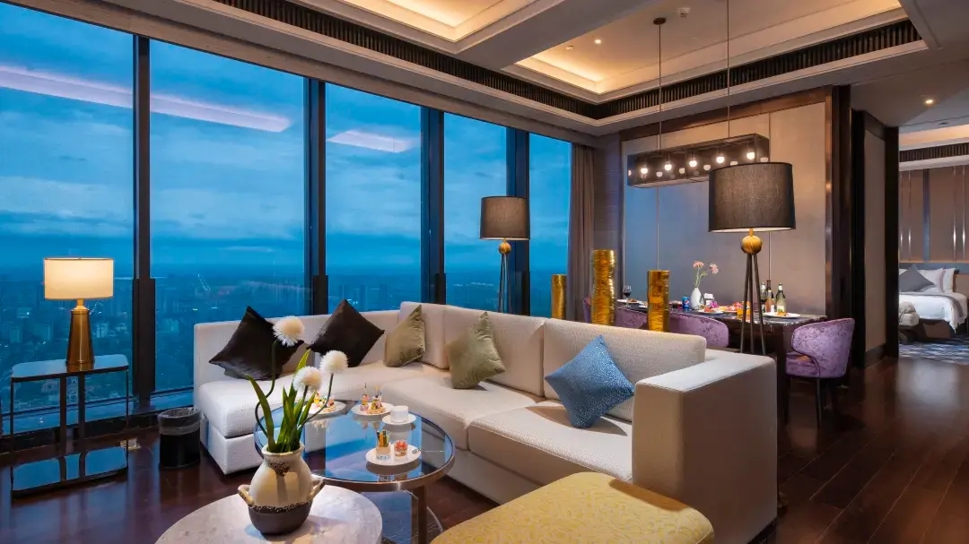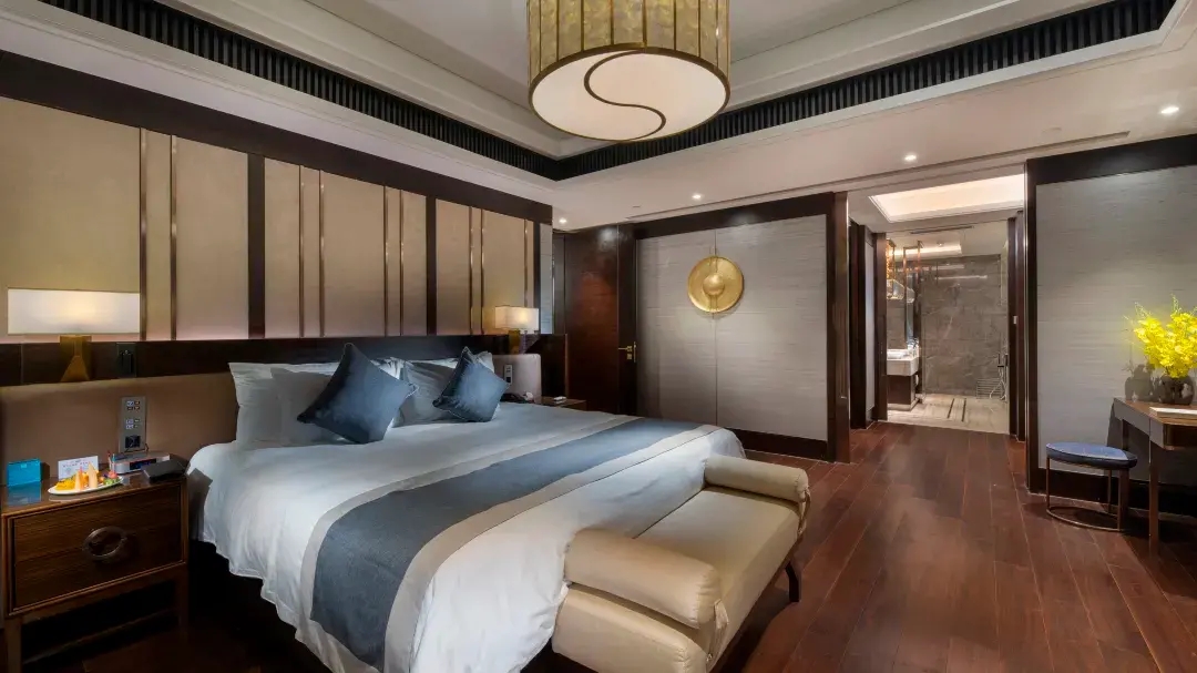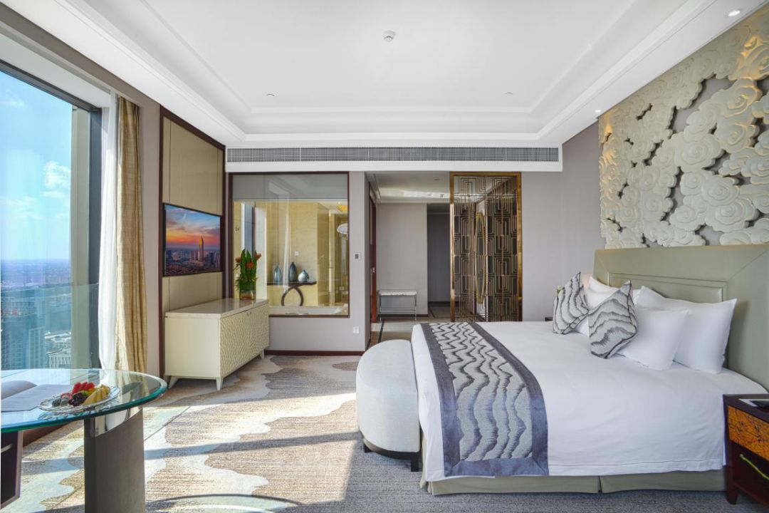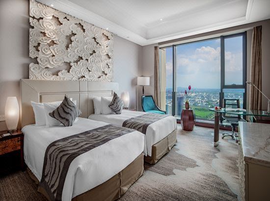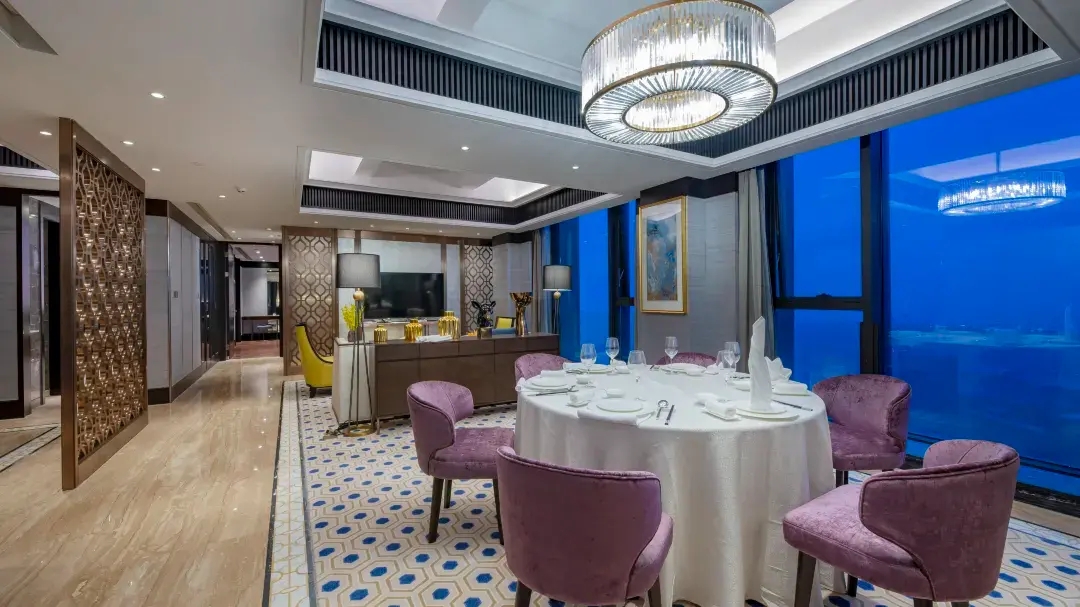 酒店高约245米,共50层,整体规划布局合理、各项功能完善、外观造型时尚、设计理念新颖。酒店主体建筑造型设计强调与城市景观环境相映衬,并结合竖线条与光影变化,凸显出酒店外形绚丽挺拔,已成为海宁颇具地标性的建筑。