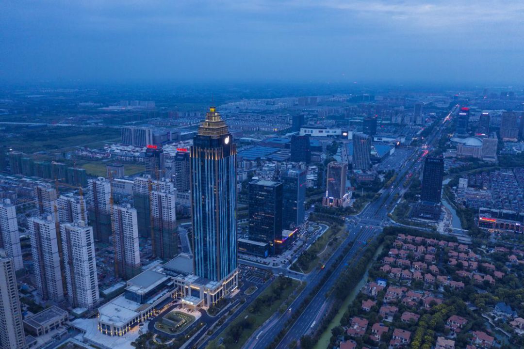 本工程由高层主楼及裙房组成。主楼50层,功能以商业办公、酒店客房为主,裙房4层,功能以沿街商业、会议、餐饮、娱乐等公共服务设施为主。该酒店地上总建筑面积100996平方米,建筑高度218米;建成后将成为海宁市最高端的一座星级酒店,对提升海宁市接待服务水平,提升城市形象具有重要意义,同时该项目的建成也必将成为海宁市的一座新地标。