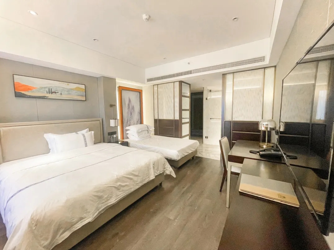 公寓建筑面积8.3万方,总投资7亿元,拥有各式公寓客房四百余间。房间视野开阔,俯瞰瓯海全景,房内装修豪华、雅致温馨、配套齐全。