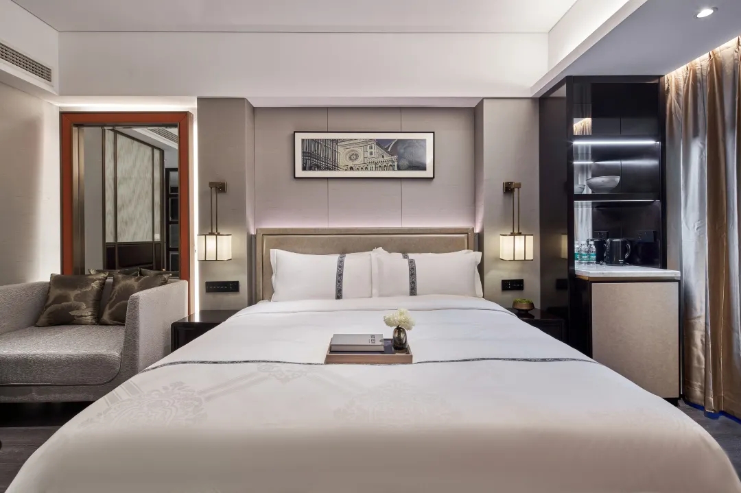 公寓裙楼共有3000多平的宴会中心,可同时容纳1800人用餐,其中有可容纳60桌的无柱宴会厅,是您婚礼宴会的选择。公寓还设有商务会议室,SPA 、健身房、180度景观恒温泳池、精品店,各种豪华配置给您提供不一样的入住体验。