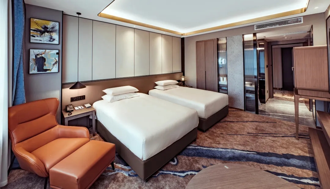 杭州万合酒店位于复兴路与南复路交叉口,背依钱塘江,比邻杭州陶瓷品市场、南宋官窑博物馆、八卦田、基金小镇,距西湖约10分钟车程,距宋城、灵隐寺等杭州核心景点约20分钟车程,距离地铁四号线水澄桥站约400米,与复兴大桥入口咫尺之遥,交通便利。酒店由国美建筑设计研究院知名设计师设计,荣获2020 DESIGN FOCUS国际空间设计大奖,淬炼钱塘江、杭城元素,简而未减,华而不宣。打造全场景无感体验,拥有智能客控系统,刷脸入住,语音/小程序完成设施控制及呼叫服务,让您感受简练建筑、科技优雅、谦恭礼遇之境。酒店拥有123间智能客房,房内设施齐全,配备顾家豪华床品、TOTO智能马桶、保险箱、迷你吧以及冰箱。无柱设计宴会厅是举办大型展会、公司会务、社交活动、梦幻婚礼的理想场所。先进的宴会设施包括专业的视听设备、3套超大高清液晶屏幕、高速互联网服务。万合酒店独具特色全日制餐厅、本味和万合轩中餐厅带您领略非凡美食之旅,亦可在大堂酒廊享受经典下午茶或午夜醇饮放松身心,观看钱江夜景;全方位开放式大露台-问茶,风光明媚的露台和静心的瑜伽诠释了什么叫做生活的艺术;您也可以在钱塘江边来一场说走就走的骑行和酣畅淋漓的跑步。旨在缔造匠心精神并提供细致温润的贴心服务,为您开启行旅雅致生活。