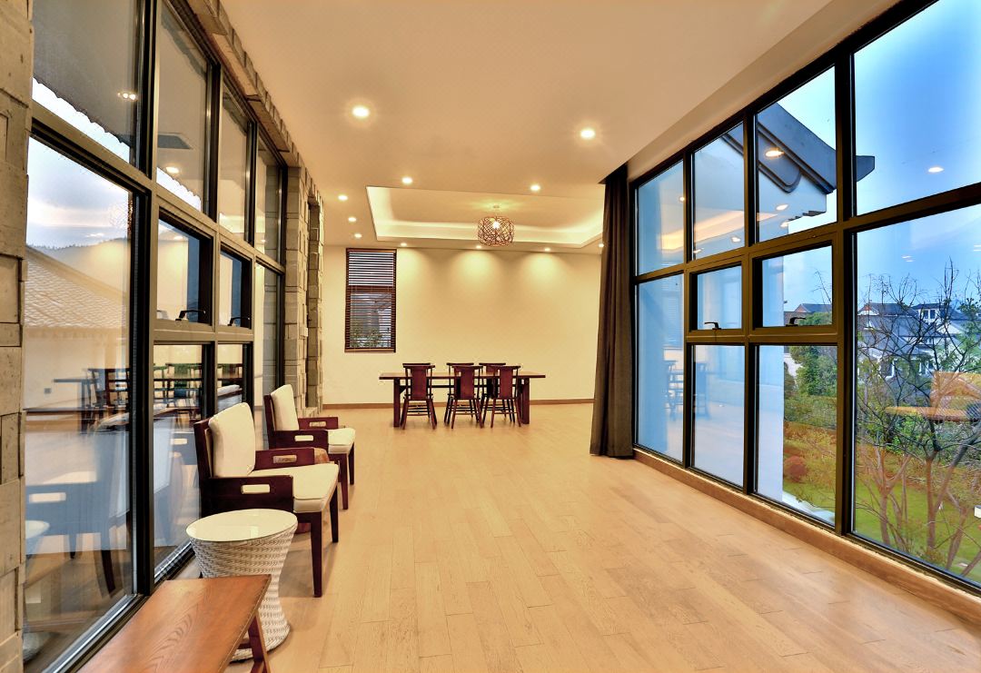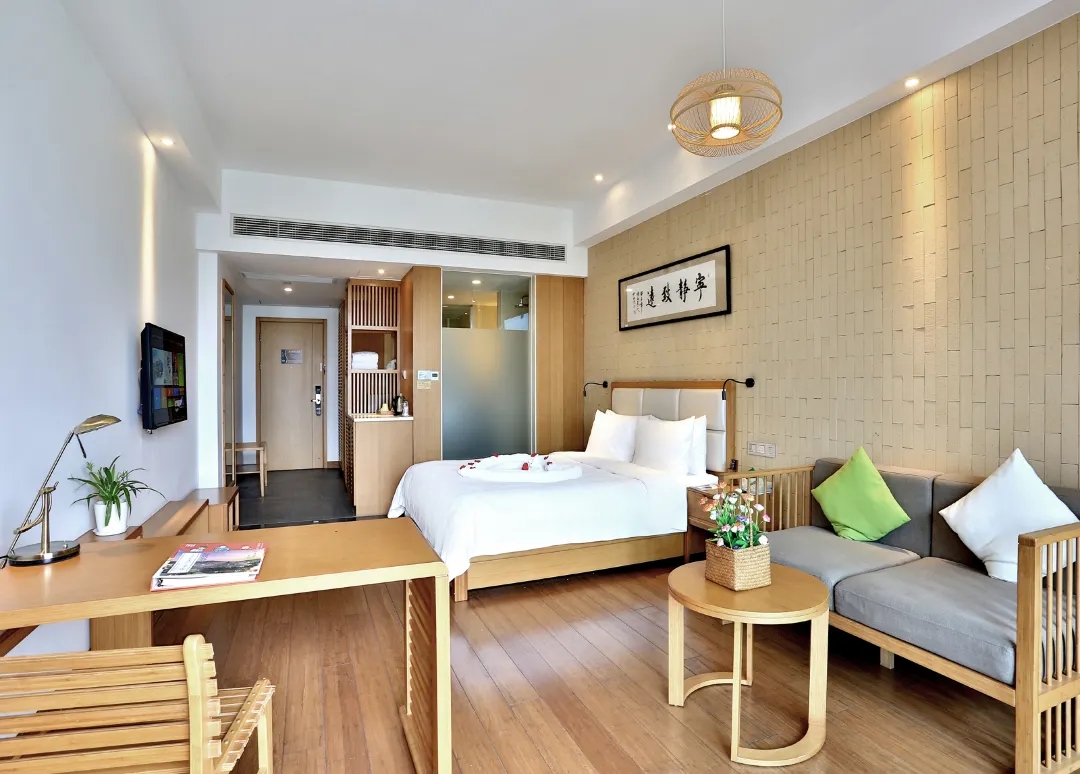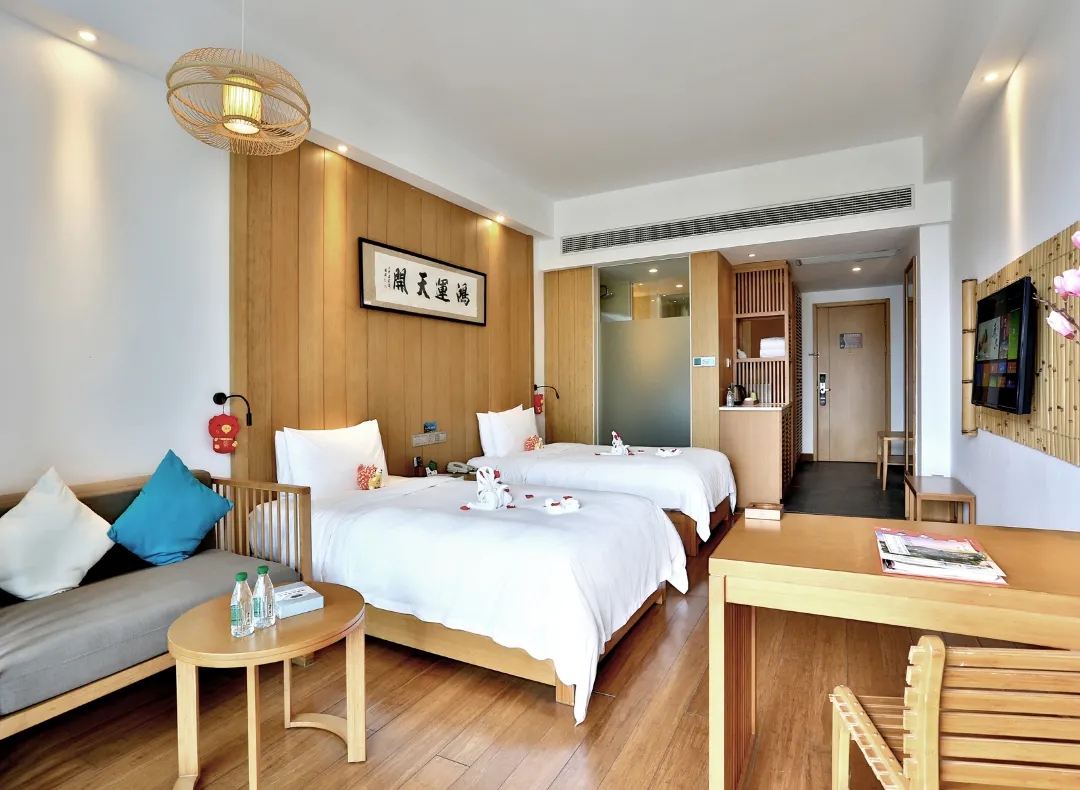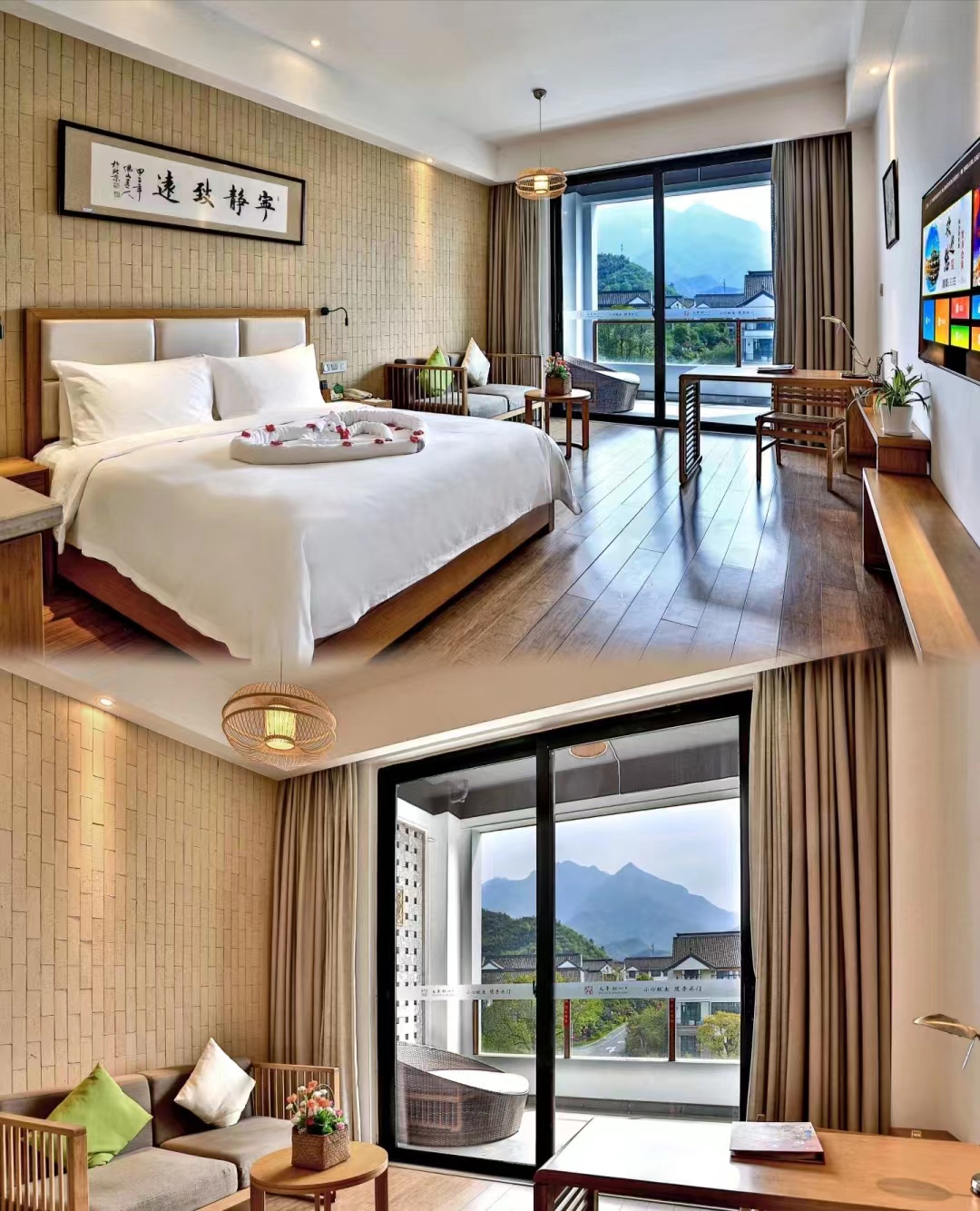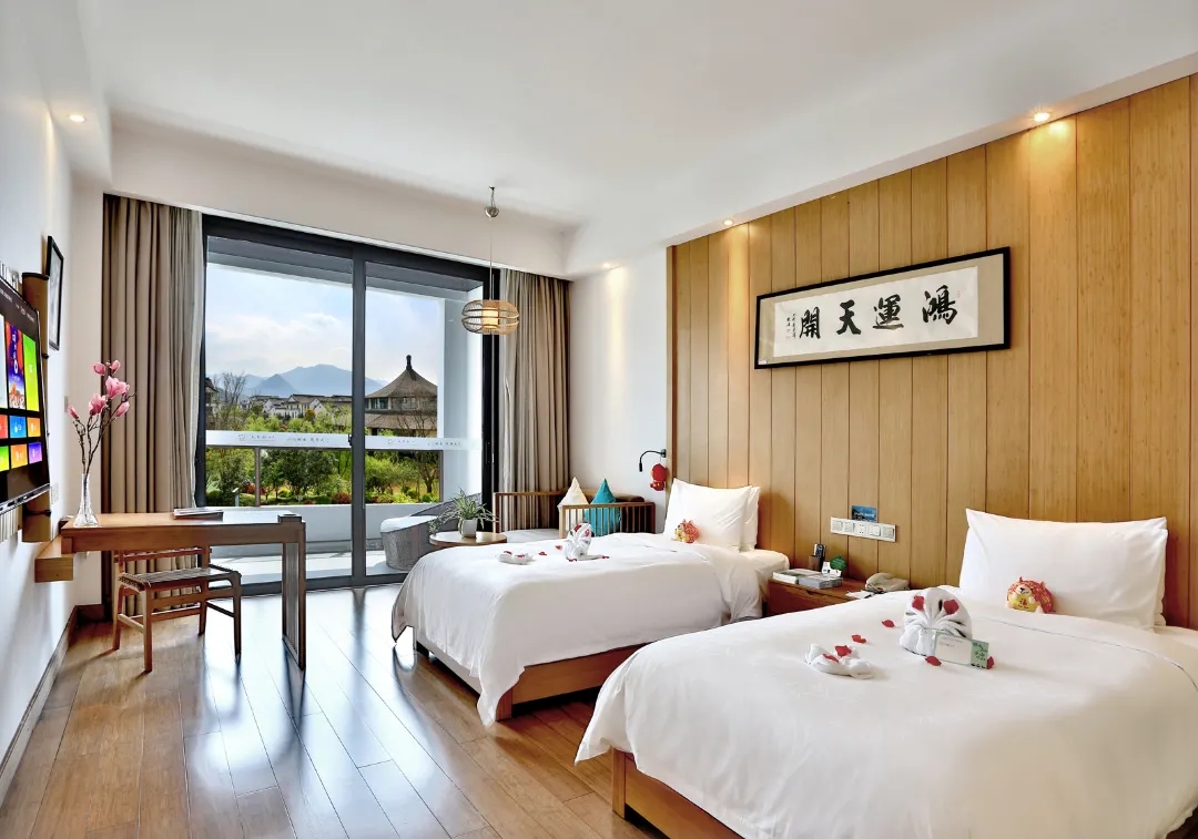 酒店以明清古建筑、合院式建筑为设计灵感,传承古建筑经典元素,并融合现代旅居要求的建筑及装饰风格。有合院式客栈、多层客栈、独栋别墅等共计千余间客房;有画舫餐厅、山外山餐厅、多功能厅、会议中心等组成的可容纳超过千人的各类餐饮设施;还有室内恒温游泳馆、书吧、影院,垂钓等休闲娱乐设施。