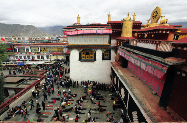 早餐后集中游览:【布达拉宫】(门票200,游览时间约1小时) ,布达拉宫海3700多米,依红山而建(高117米共13层,东西长360余米)。“布达拉”是普陀罗的译音,即菩萨住的宫殿。集宫殿、寺院和灵塔殿三位一体的建筑;也是旧西藏政教合一的的统治权力中心,分为红宫和白宫,红宫为历代达赖的灵塔殿和各类佛堂;白宫是达赖喇嘛的冬宫,是旧时西藏地方政府的办事机构。(在广场可以拍布宫全景)。下午参观建于吐蕃王朝时期的最早的佛堂——【大昭寺】(约1小时)。大昭寺建于公元七世纪,是西藏的佛教中心和藏传佛教信徒心中的圣地,它供奉有文成公主所带“佛祖释迦牟尼十二岁的等身像”,是藏族老百姓心目中最为神圣灵验的一尊佛像。随后游览拉萨乃至整个藏区人文景观的缩影—【八角街】(游览时间1个小时,这里汇聚着来自各地的朝拜者,还有那些令人眼晕的摊点,围绕在四周的众多建筑,也暗藏着众多古迹,它们述说着拉萨的历史。八角街(名为八廓街,因为四川话“廓”和“角”同音,所以叫八角街流传至今),不仅是一条转经道,同时它也是拉萨最大的商业街,两旁店铺林立,商品充满充满西藏、尼泊尔及印度特色。