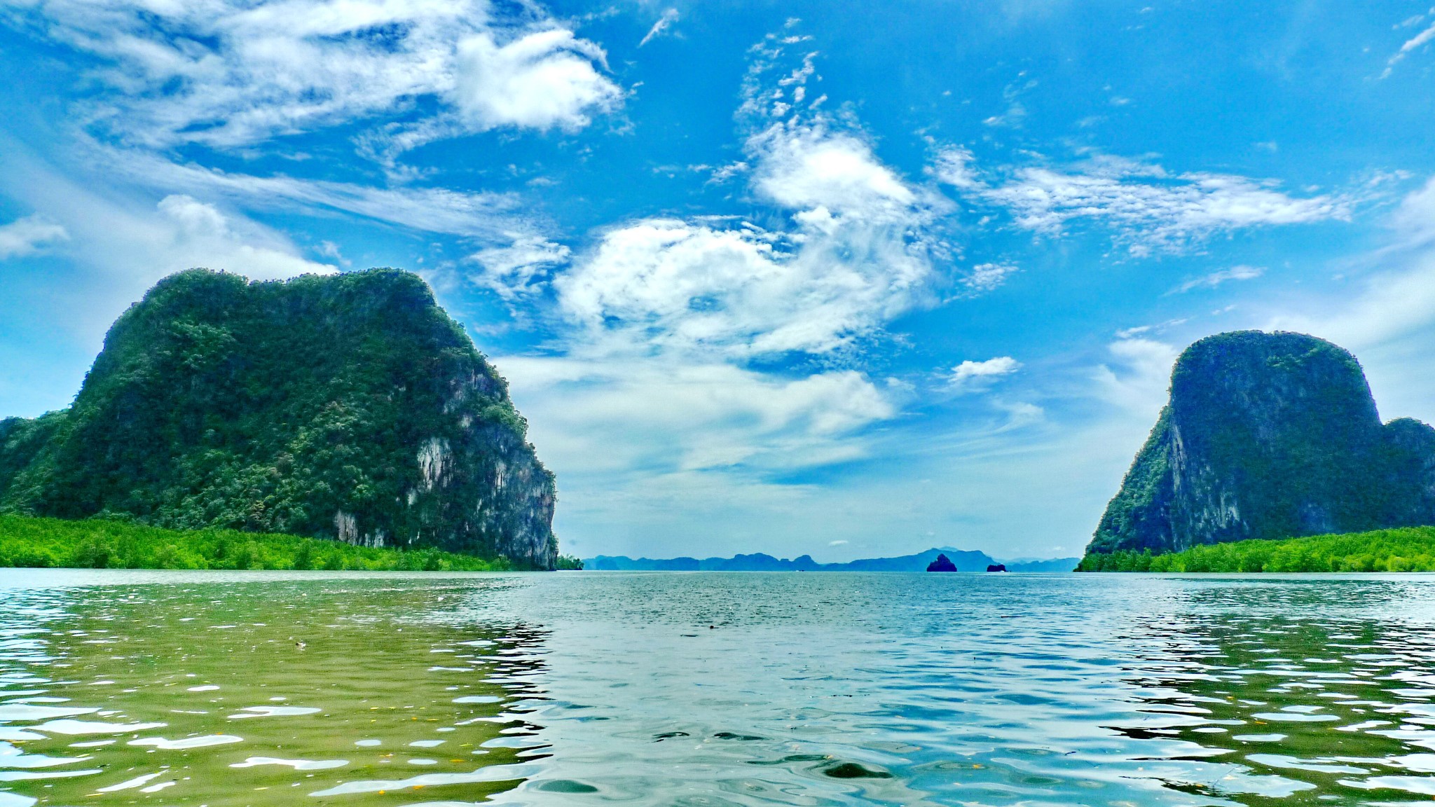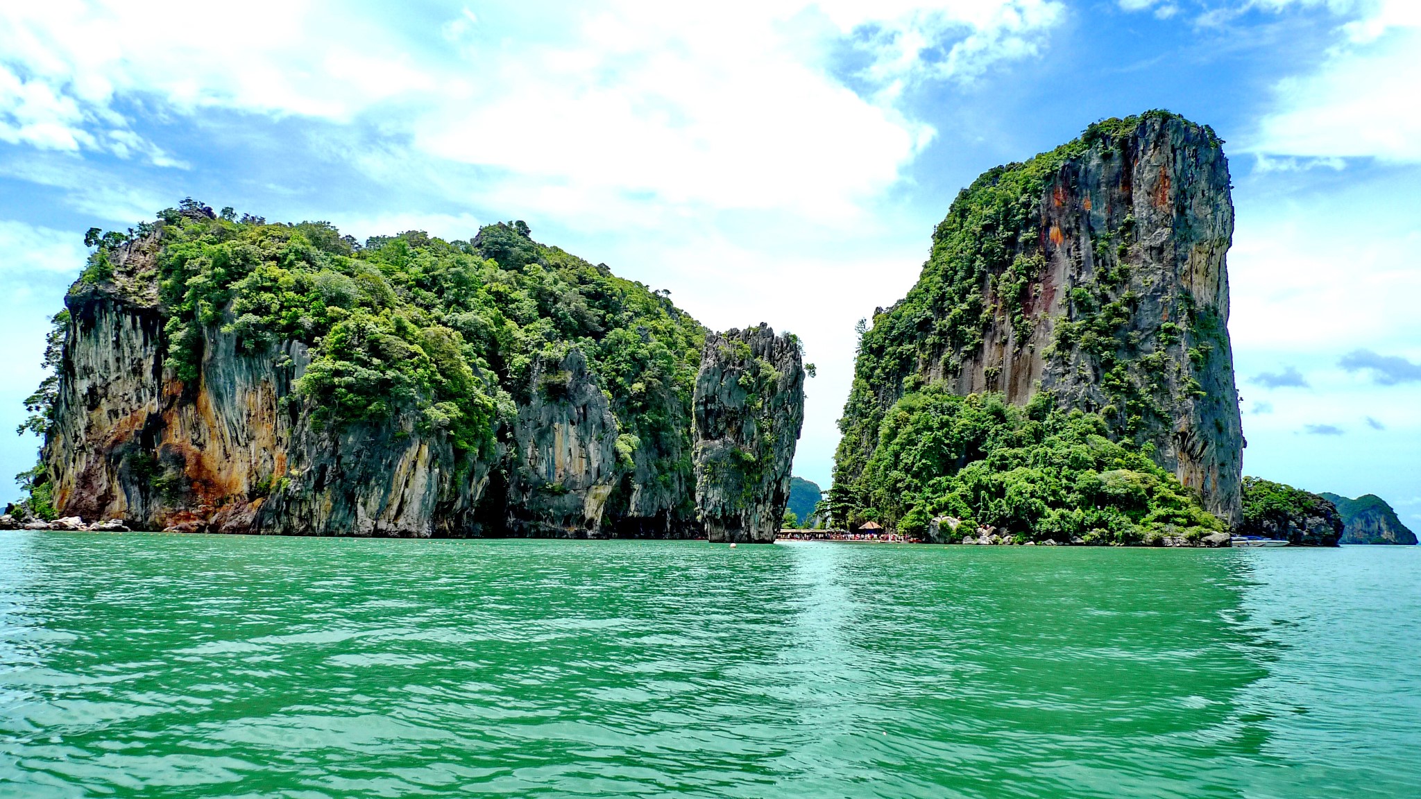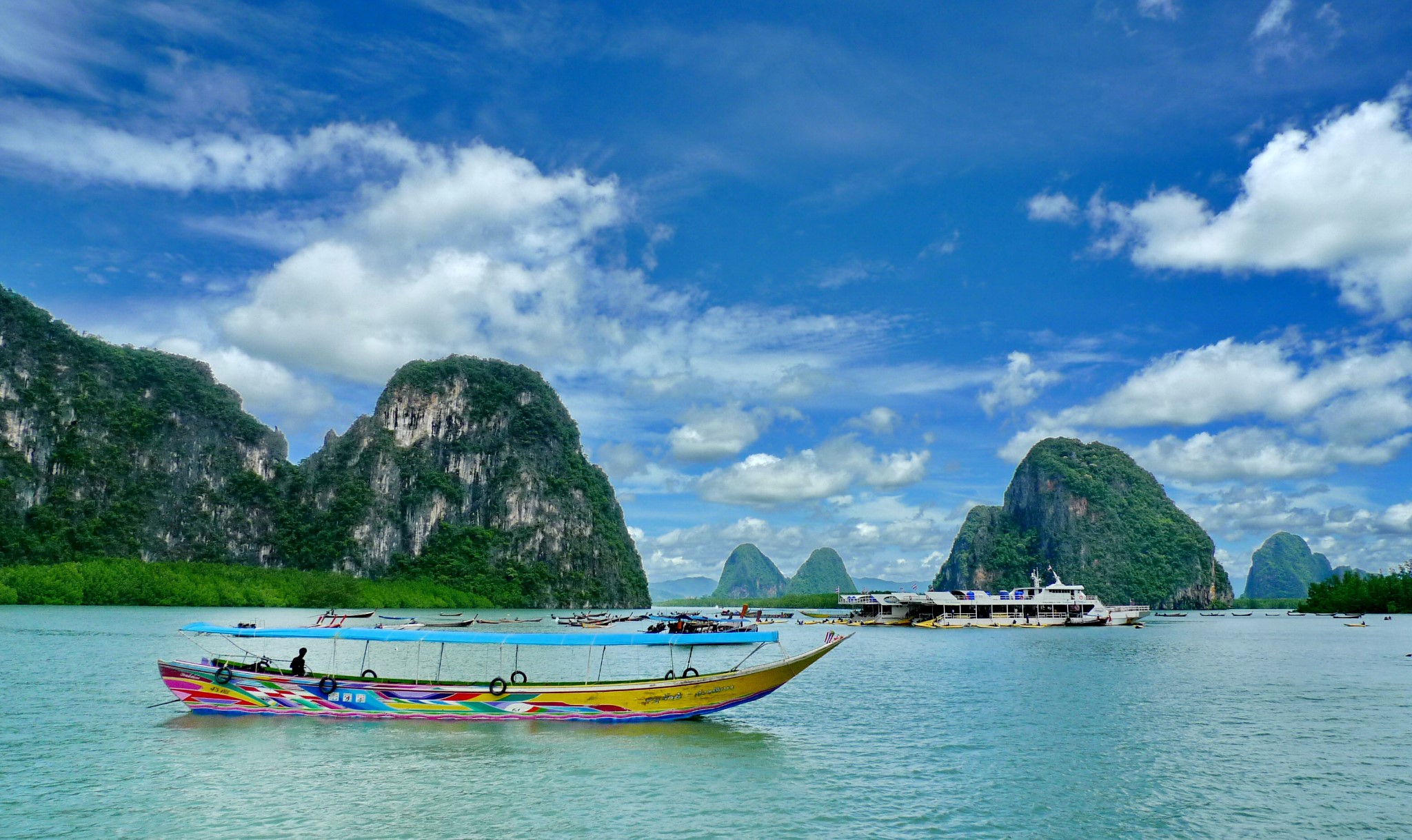 早餐后前往游览有小桂林之称的【攀牙湾】『车程约90m』,岛上是奇异迷人的石群和矗立海中锝断崖岛屿所组成的,一路乘游船沿海观赏由石灰岩所组成的大小岛屿,洞顶垂吊向下的钟乳石。午餐于水上人家享用海鲜餐,可参观闻名世界的美国电影“007金枪客”片立的“【007岛】”,亦为攀牙湾之最。特别赠送客人参加险刺激的【泛舟之旅约15min】(一般团队为自费,卖价800铢/人。温馨提示请提前准备100铢/艇的小费,交于划艇工作人员),首先于船上完成两人或三人一组的配对,前往参观美丽而灿烂的钻石洞及滴成冰淇淋形状之钟乳石,不禁令人赞叹造物者之神奇,奇岩怪石、嶙嶙峋峋的围绕在您周围,九弯十八拐地循序造访,仿佛置身于瑶池仙境中,乘船返回码头返回普吉,晚上观看著名的【人妖歌舞表演约40min】,欣赏美丽的泰国西施。晚上也可自行前往芭东闹市感受一下独特的夜色。