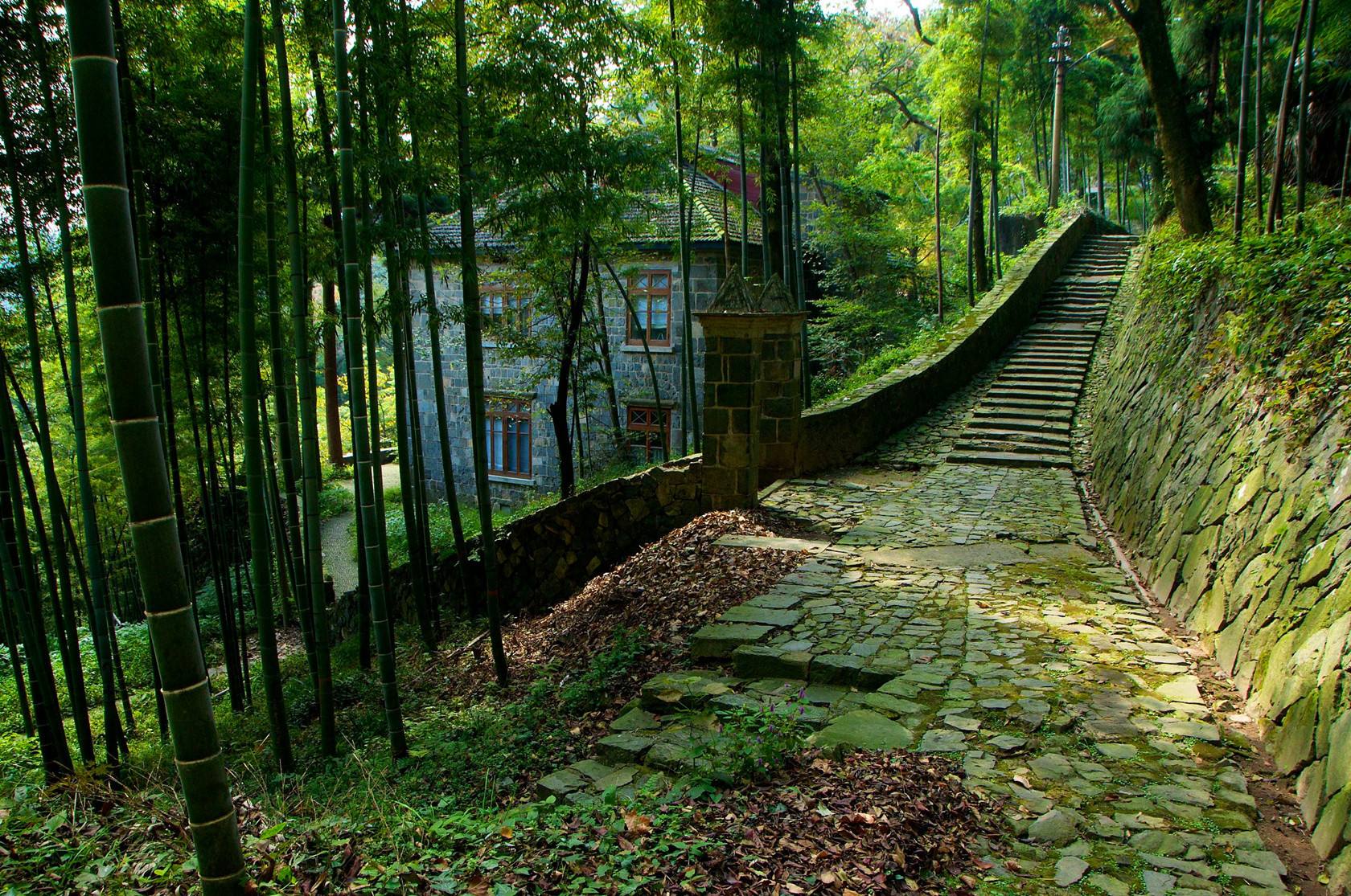 ▲早餐后,游览【莫干山风景区】(游约 3.5 小时)沿途欣赏竹海及掩映在竹海中的风格各异的幢幢别墅莫干山是中国著名的度假休闲旅游及避暑胜地。游览景点武陵村(蒋介石总统官邸,外观莫干山较有代表性的别墅群,约 40 分钟)、滴翠潭(江南第一大字,约 15 分钟)、旭光台(观莫干山全景),参观毛泽东下榻处、莫干山会议旧址大教堂、游览剑池(莫邪干将炼剑处、看三叠瀑布,约 60 分钟)、芦花荡公园(陈帅诗碑亭、鹤琢泉等、开山老祖雕像、蒋介石宋美龄度蜜月处等。慢慢享受中国四大避暑胜地和"江南第一山" 的魅力,走出久被噪音围困的圈子,莫干山能给你一个静谧的天地。