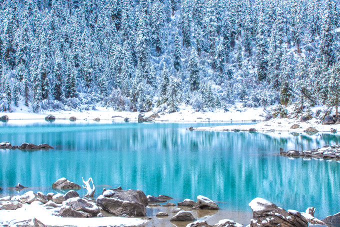 【羊卓雍措】是西藏的三大圣湖之一,和纳木错一样都是一汪天堂里的湖。从爱上西藏开始,便爱上了这里的山水人文。到了羊卓雍措的观景台,一个拐弯处挂满经幡,觉得自己走到了朝圣的仙境,这里可以拍照。从山上可以俯瞰到羊湖,真的碧蓝,难怪说是仙女的绿松石耳坠掉在了这里