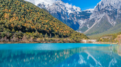 ►►【蓝月谷】也是深受游客喜爱的景点,因在晴天时,水的颜色是蓝色的,而且山谷呈月牙形,远看就像一轮蓝色的月亮镶嵌在玉龙雪山脚下,所以名叫蓝月谷。无需后期P图就出大片,很多婚拍、旅拍也在此取景。