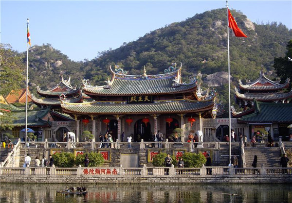 寺起源于唐代,清康熙重建,因其与普陀山普济寺同为主祀观音菩萨,又地处普陀山之南,故名南普陀寺。