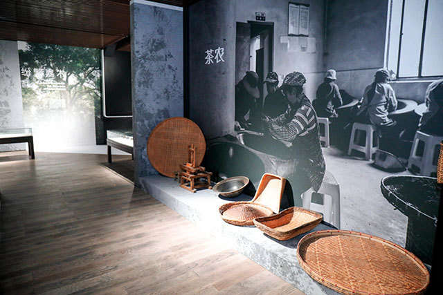菰城博物馆茶文化馆坐落于湖州丝绸小镇内,总面积近1000平方米,分为上下两层。茶文化馆一层是茶文化展厅,内设陆羽雕像、茶经等,展示了陆羽在湖州生活的经历和陆羽的朋友圈。馆内还有包括茶壶、茶叶罐、茶盏、茶碗等各类茶器的展陈。